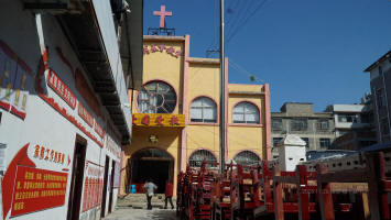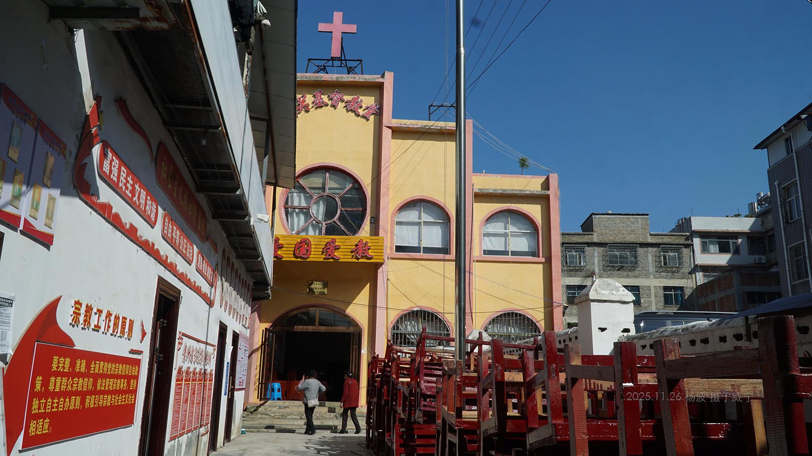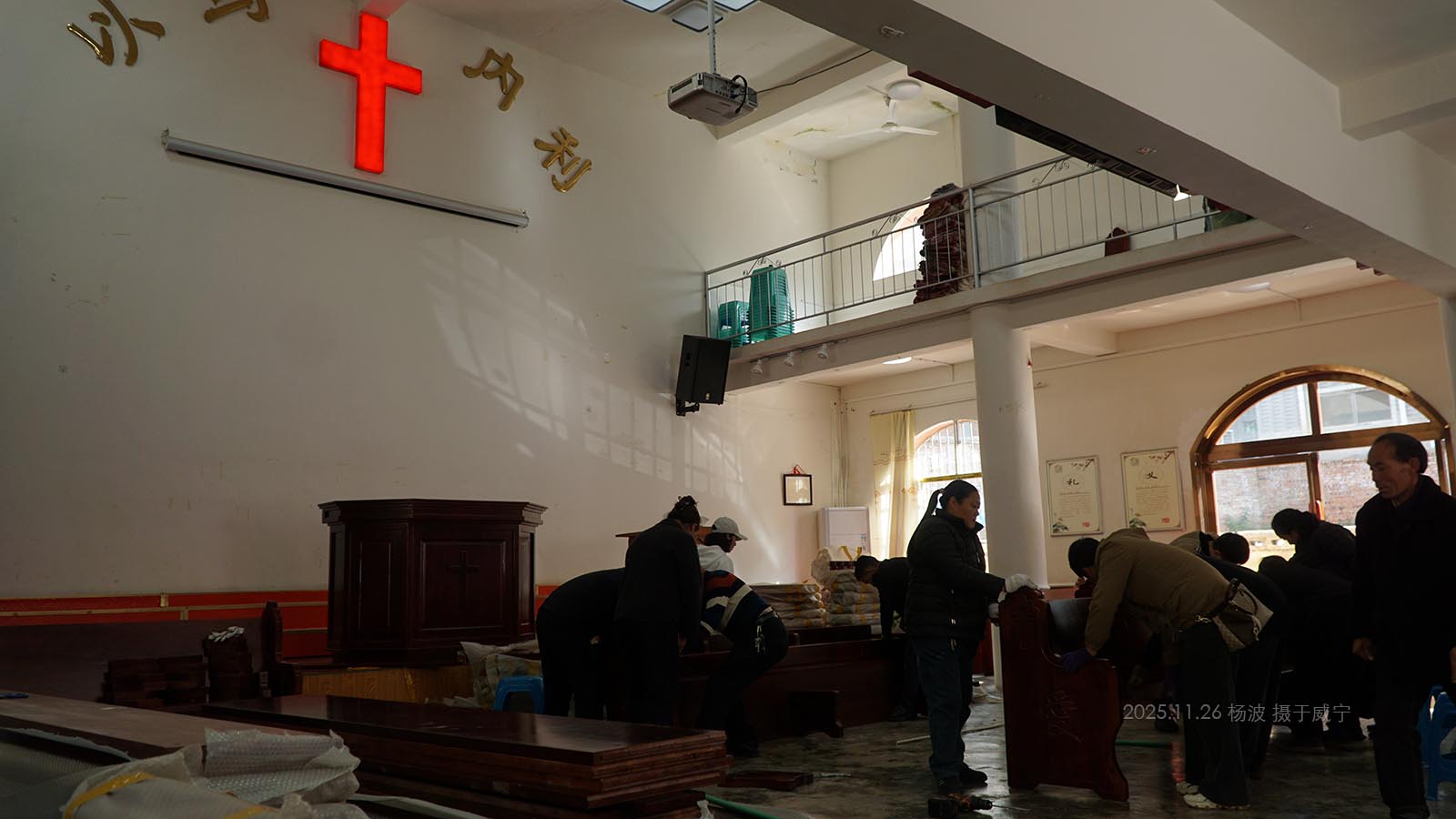 在更换桌椅的教堂