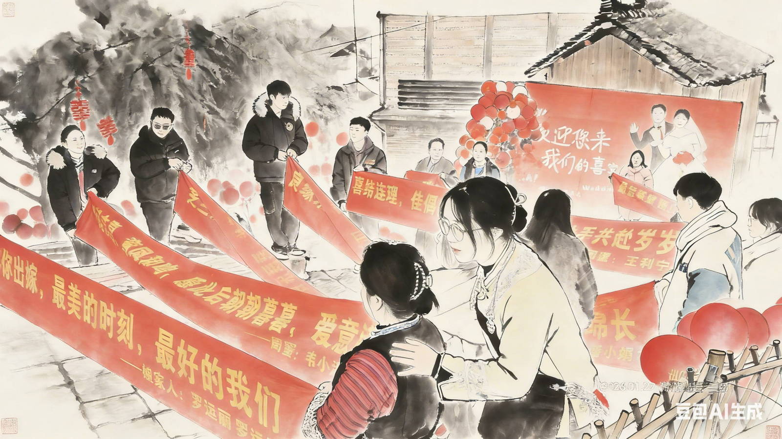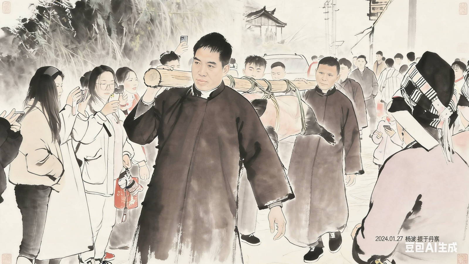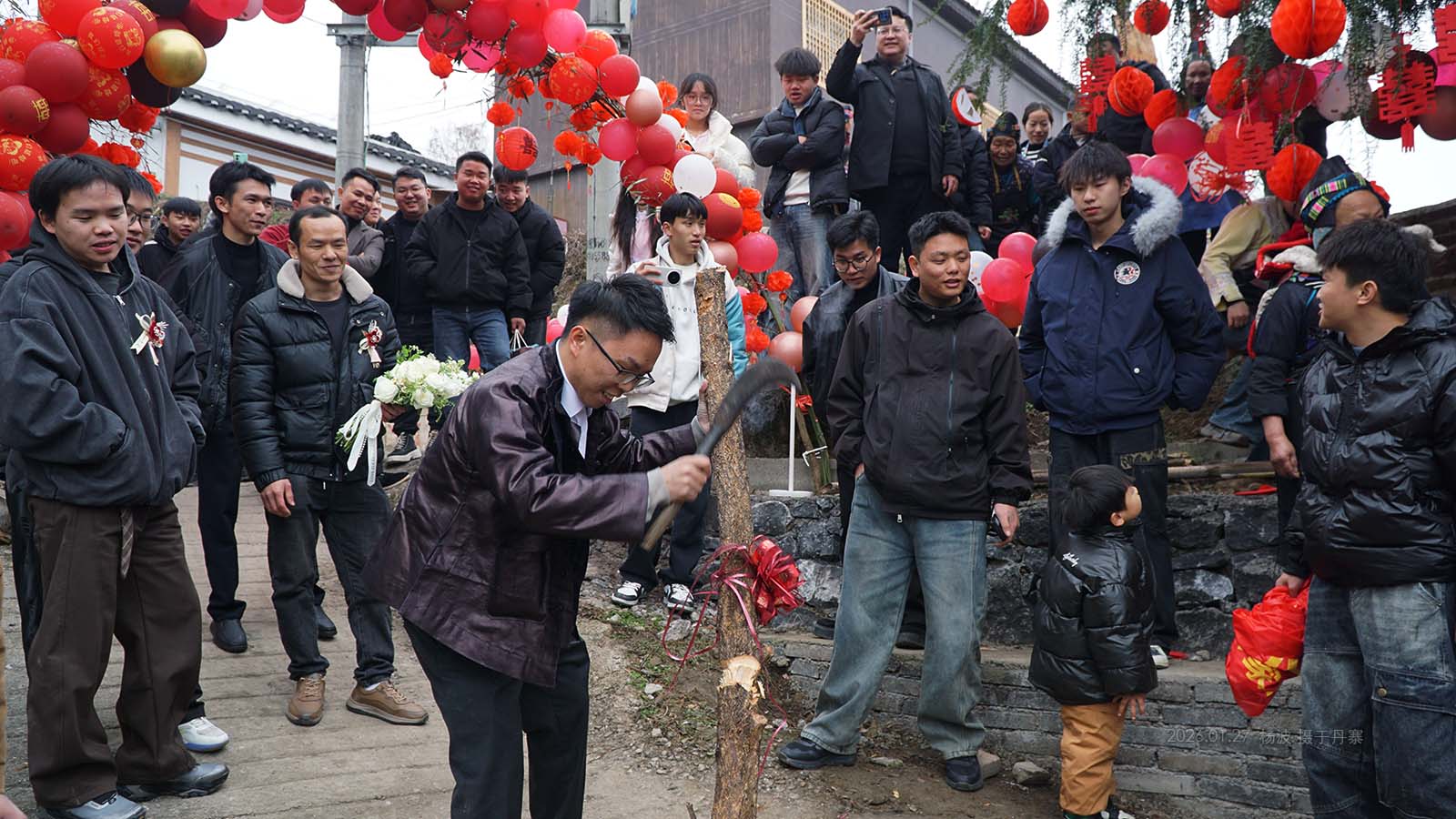 新郎出现在村口
