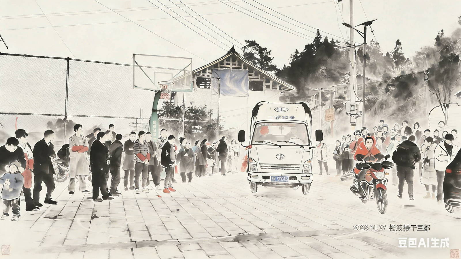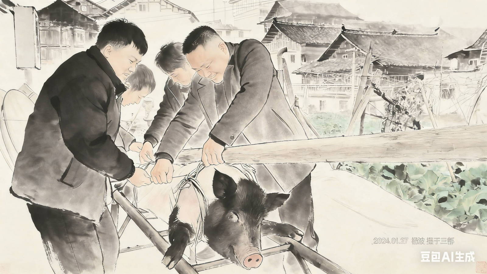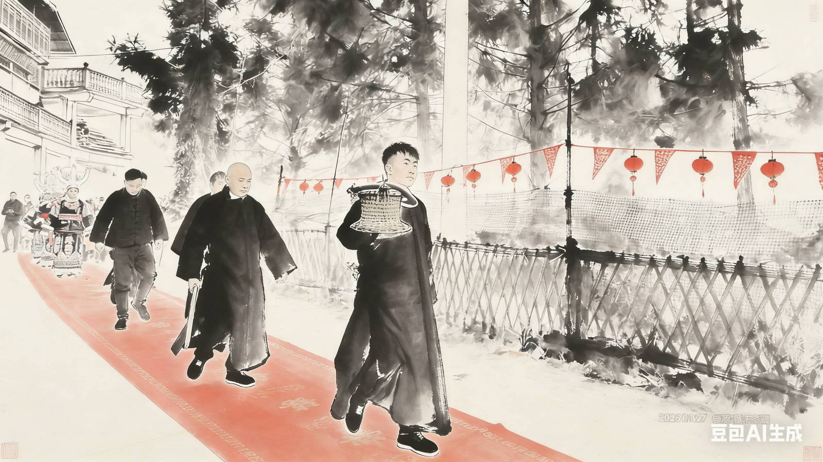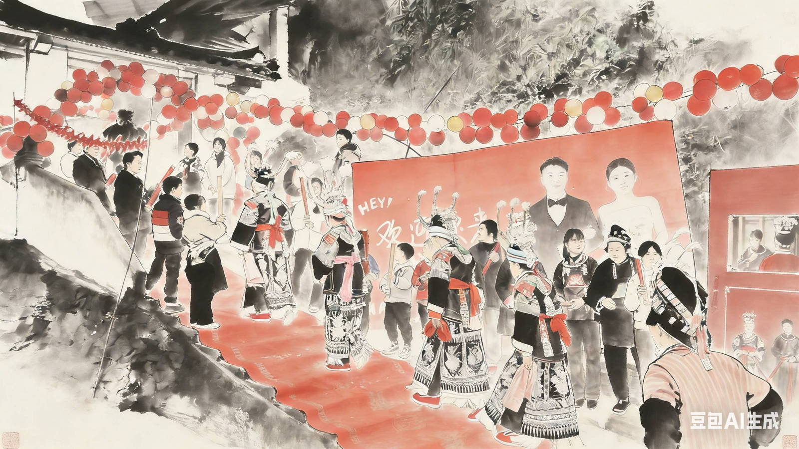 新郎出现在村口