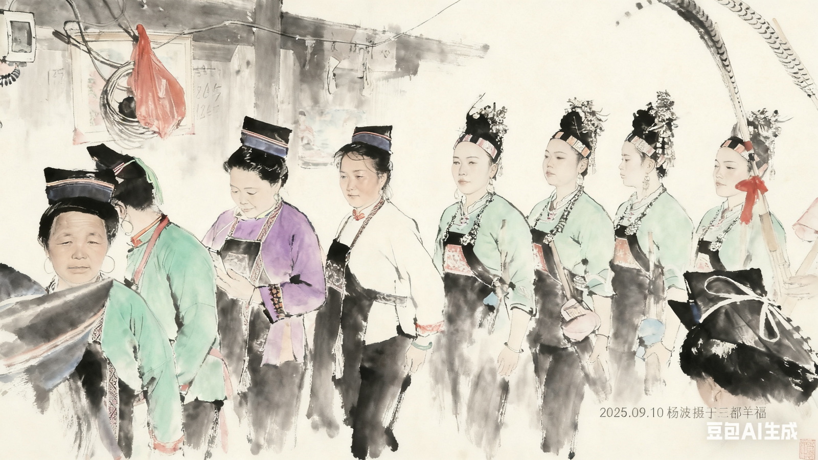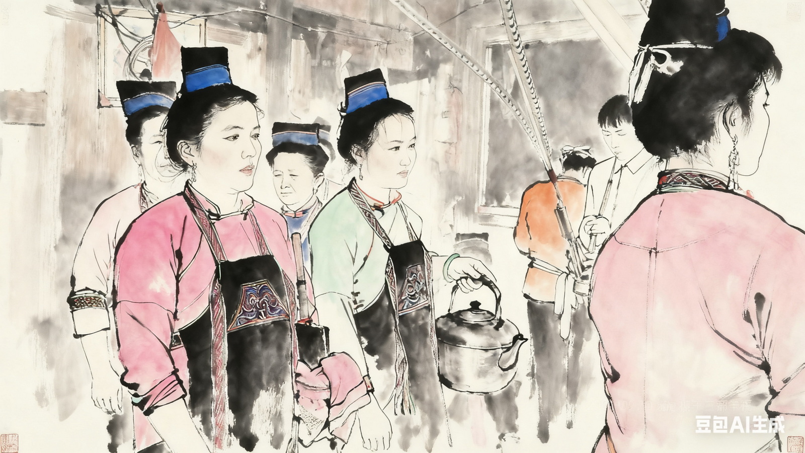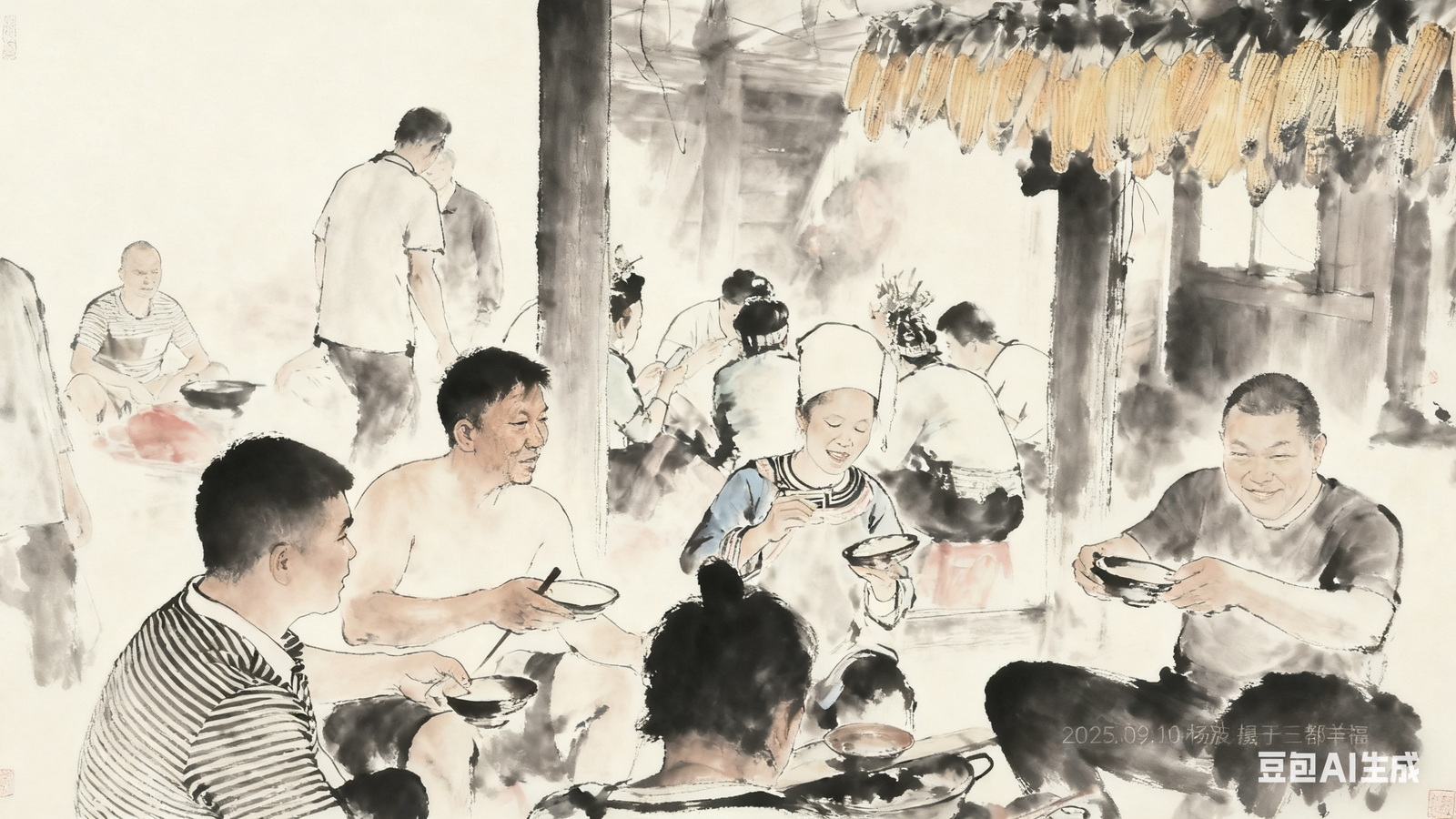 午餐,前排为水族妇女