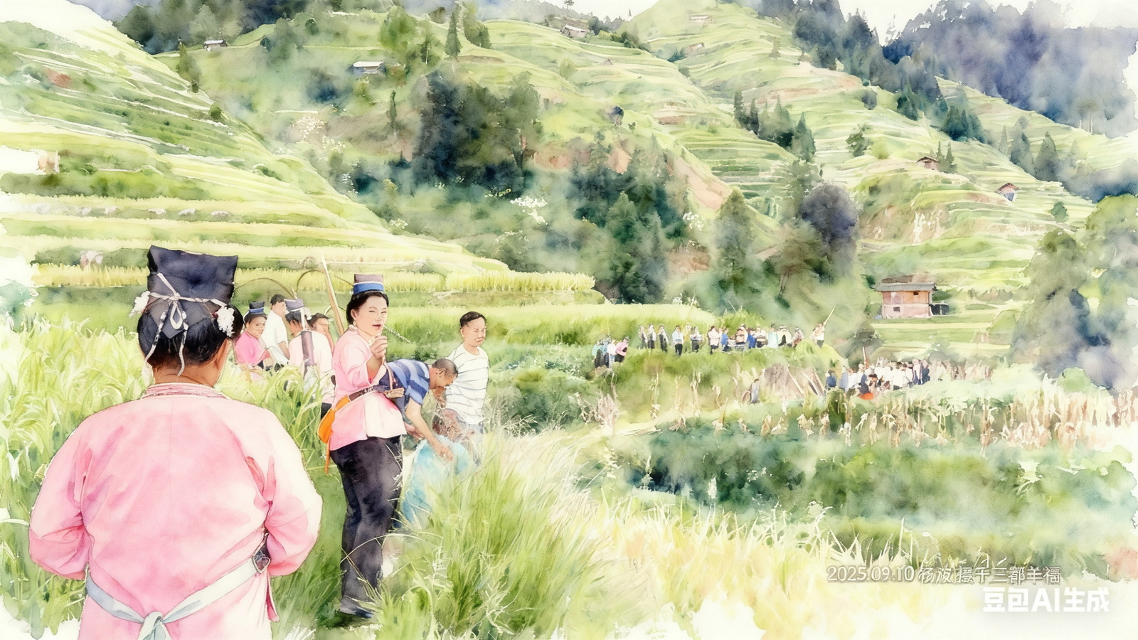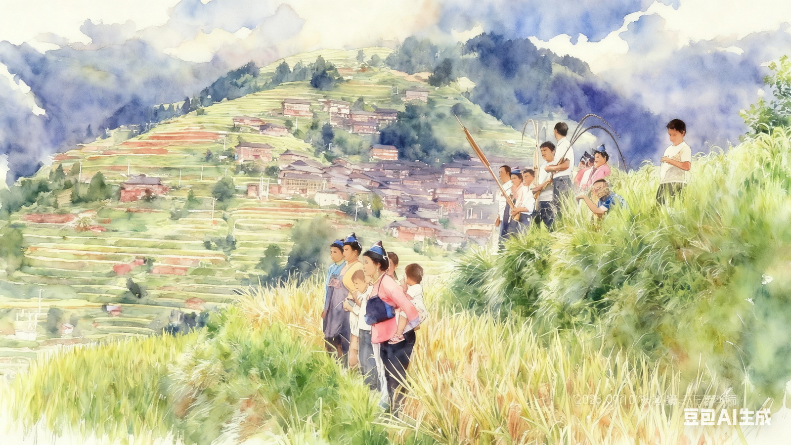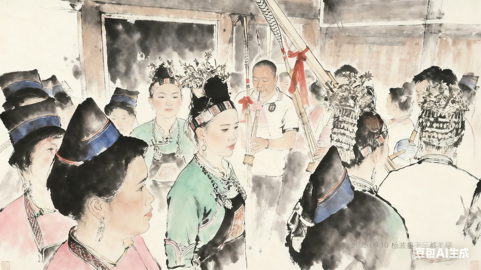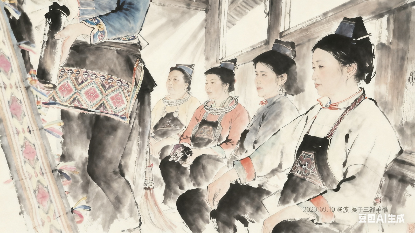 午餐,前排为水族妇女