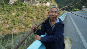 从教堂回来的彝族老人